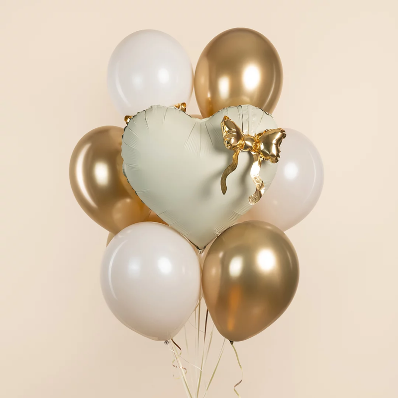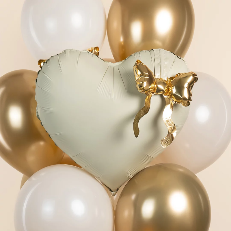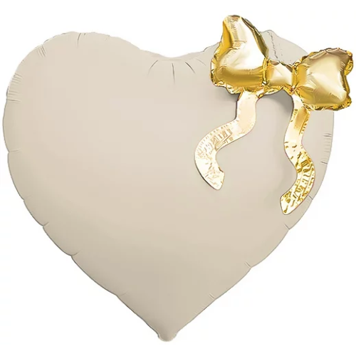 Шар (22''/56 см) Сердце, Золотой бант, Кремовый, Сатин, 1 шт. в уп., 27722