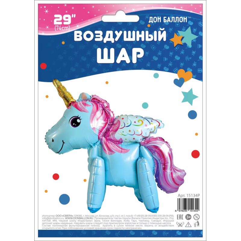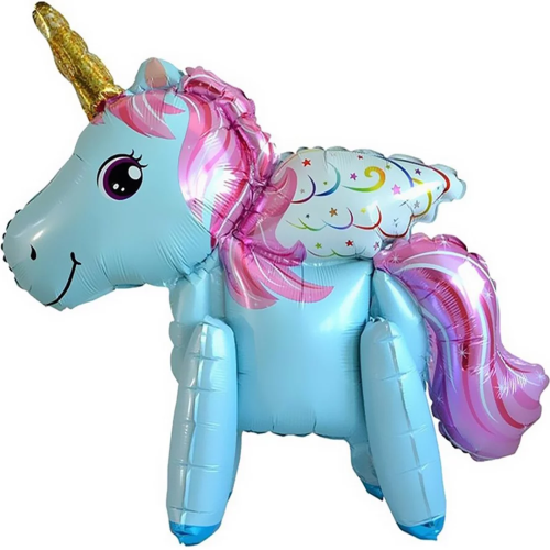 Шар (23''/58 см) Фигура 3D, Единорог с крыльями, Голубой, 1 шт. в уп., 15134P