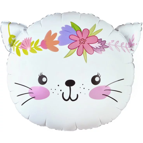 Шар (23''/58 см) Фигура, Котенок в цветах, Белый, 1 шт. в уп., 21992P