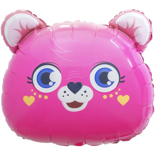 Шар (23''/58 см) Фигура, Мишка, Золотые сердечки, Розовый, 1 шт. в уп., 23522