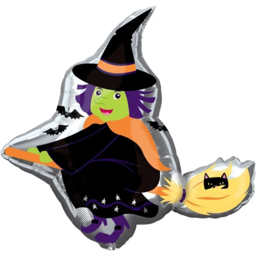 Шар (23''/58 см) Фигура, Ведьма на метле, 1 шт., 15169