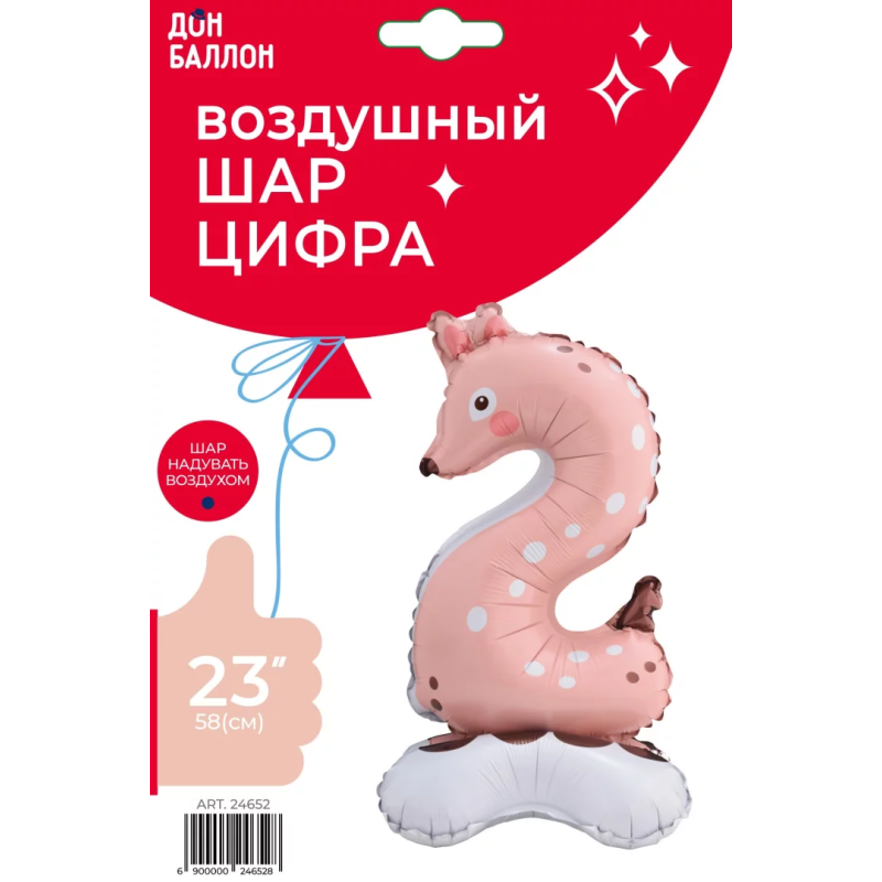 Шар (23''/58 см) Цифра на подставке, 2 Зверята, Олень, 1 шт. в уп., 24652