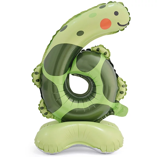 Шар (23''/58 см) Цифра на подставке, 6 Зверята, Черепаха, 1 шт. в уп., 24656