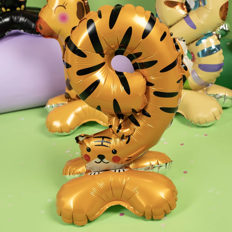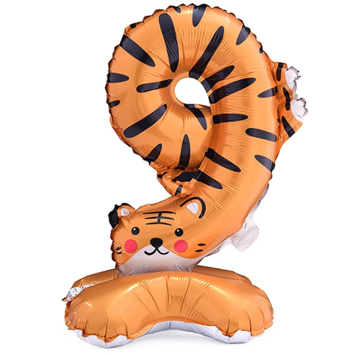 Шар (23''/58 см) Цифра на подставке, 9 Зверята, Тигр, 1 шт. в уп., 24659