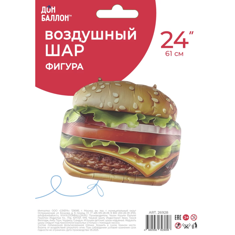 Шар (24''/61 см) Фигура, Бургер, 1 шт. в уп., 26928