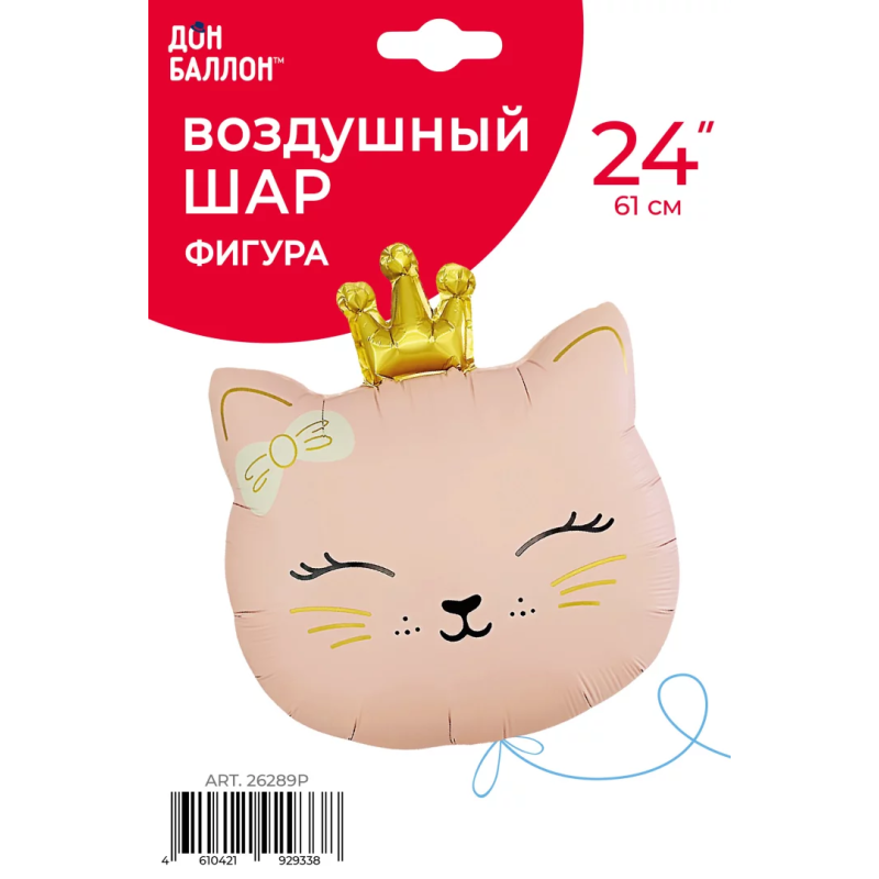 Шар (24''/61 см) Фигура, Кошечка Принцесса, Розовый, Сатин, 1 шт. в уп., 26289P