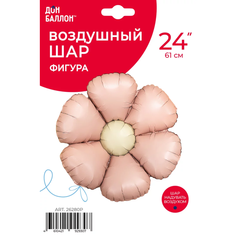 Шар (24''/61 см) Цветок, Ромашка (надув воздухом), Розовый, Сатин, 1 шт. в уп., 26280P