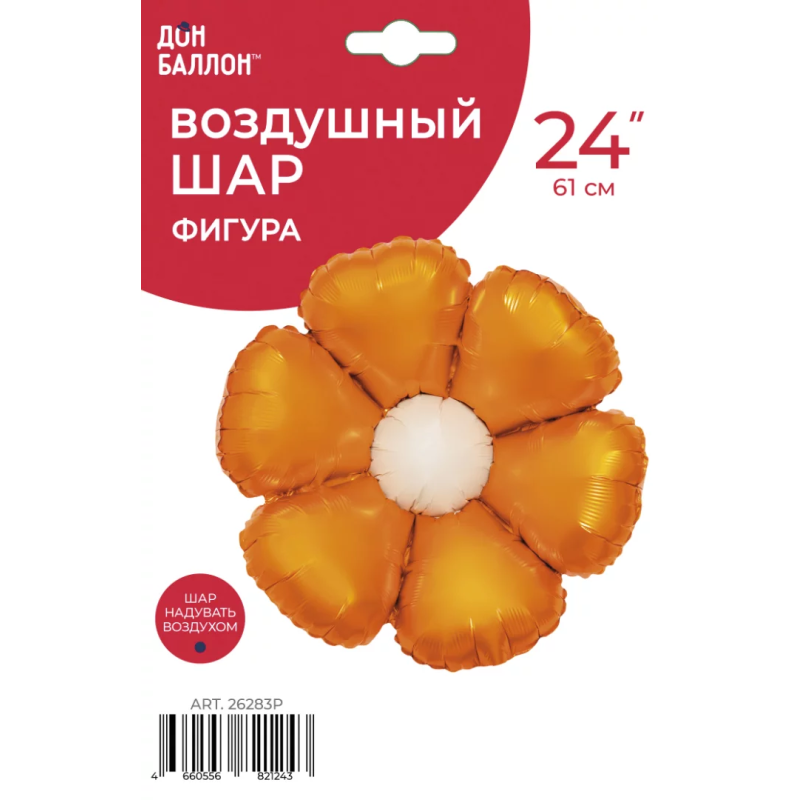 Шар (24''/61 см) Цветок, Ромашка (надув воздухом), Золото, Сатин, 1 шт. в уп., 26283P