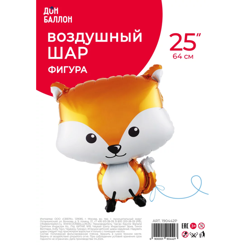 Шар (25''/64 см) Фигура, Лесная Лиса, 1 шт. в уп., 190442P