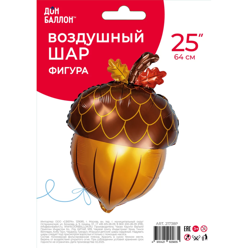 Шар (25''/64 см) Фигура, Желудь, 1 шт. в уп., 21738P