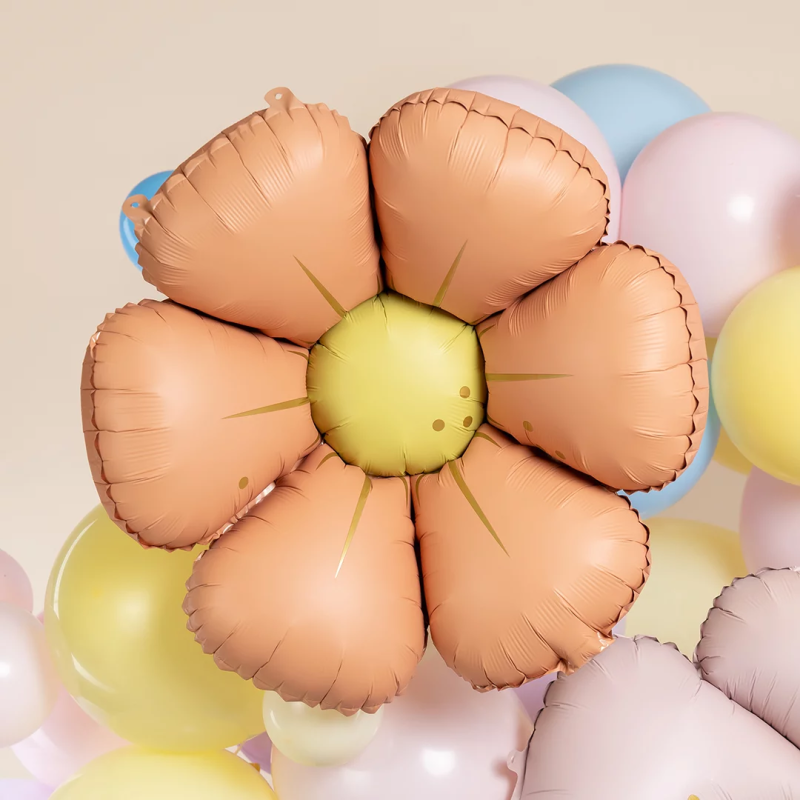 Шар (25''/64 см) Цветок, Ромашка (надув воздухом), Персиковый, Сатин, 1 шт., 27427