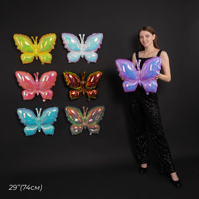 Шар (26''/66 см) Фигура, Бабочка (надув воздухом), Жемчужный, Хамелеон, 1 шт. в уп., 24988