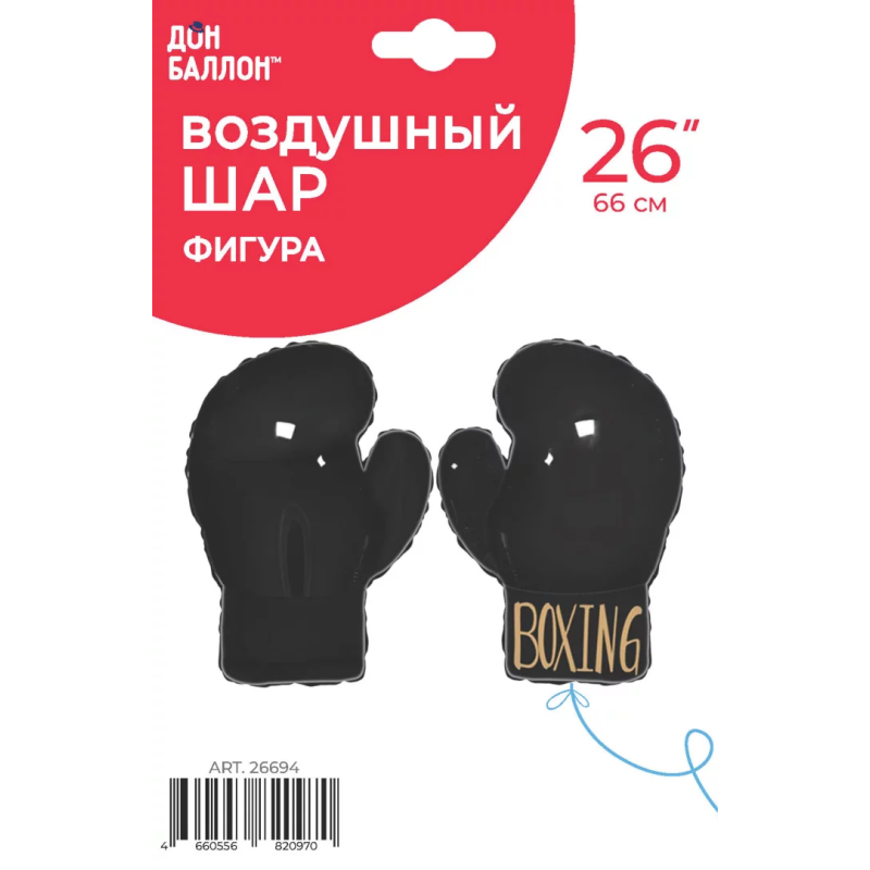 Шар (26''/66 см) Фигура, Боксерская перчатка, Черный, 1 шт. в уп., 26694