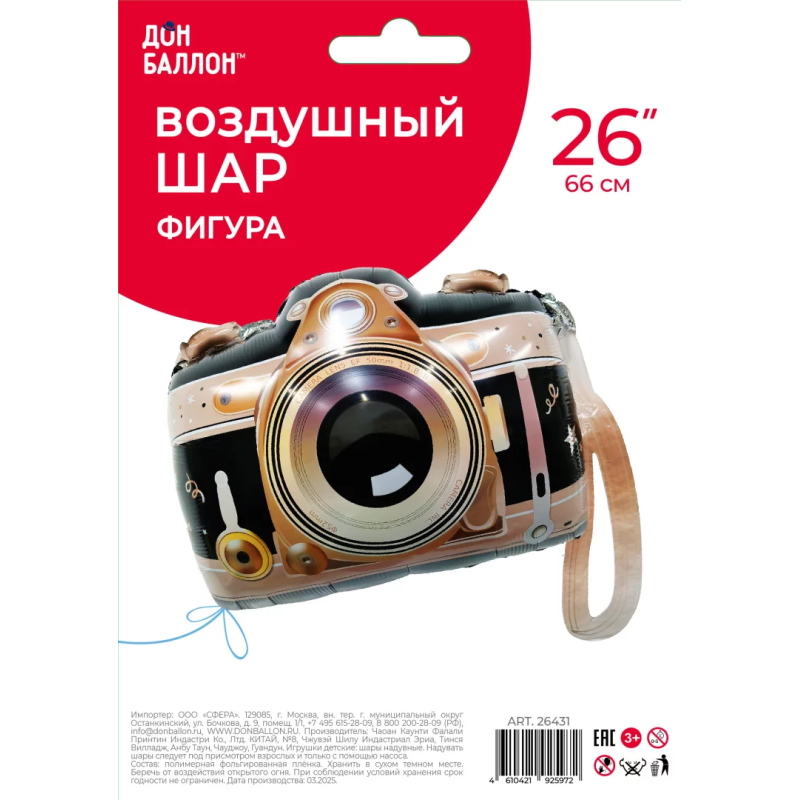 Шар (26''/66 см) Фигура, Фотоаппарат, 1 шт. в уп., 26431