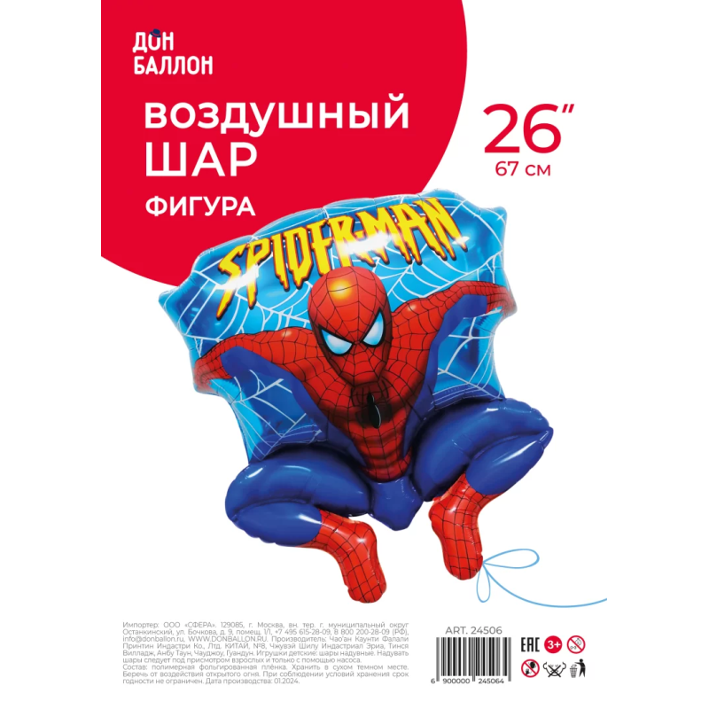 Шар (26''/66 см) Фигура, Герой Паук в прыжке, 1 шт. в уп., 24506