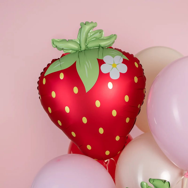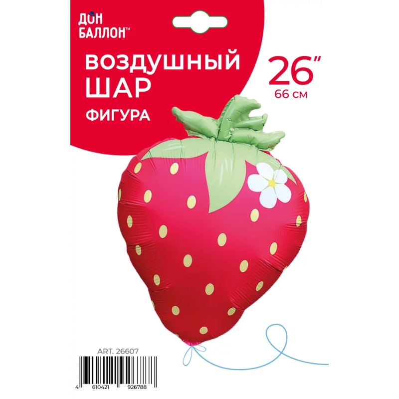 Шар (26''/66 см) Фигура, Клубника с цветком, Красный, Сатин, 1 шт. в уп., 26607