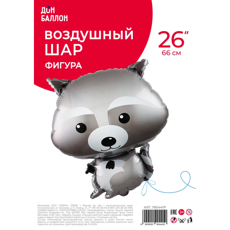 Шар (26''/66 см) Фигура, Лесной Енот, 1 шт. в уп., 190441P