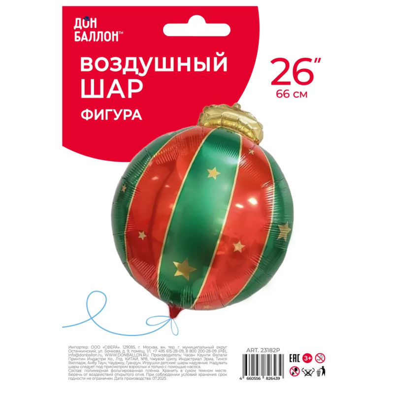 Шар (26''/66 см) Фигура, Новогодний шар, Красный/Зеленый, 1 шт. в уп., 23182P