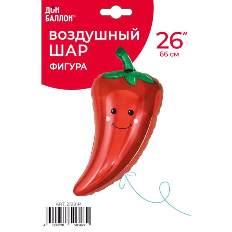 Шар (26''/66 см) Фигура, Перчик Чили, Красный, 1 шт. в уп., 21981P