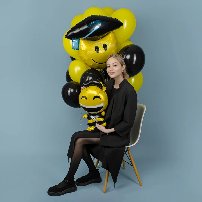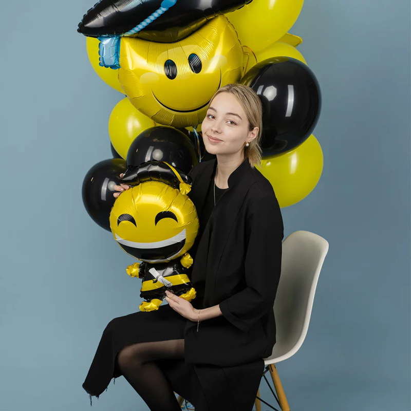 Шар (26''/66 см) Фигура, Смайл Выпускник (надув воздухом), 1 шт., 24578