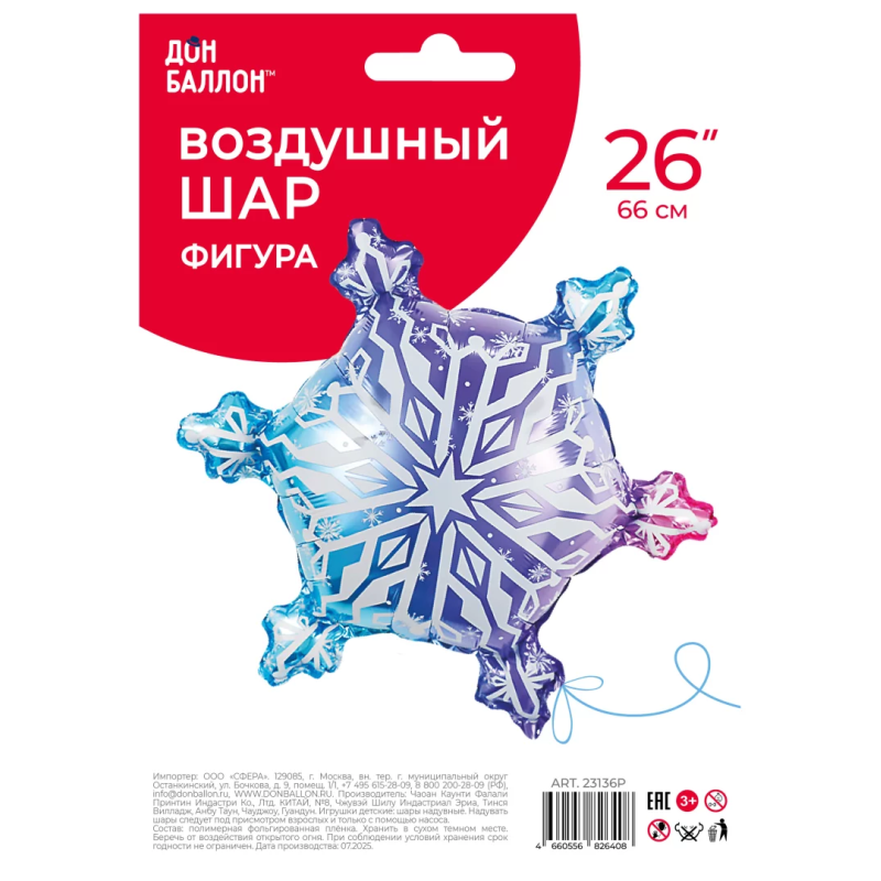 Шар (26''/66 см) Фигура, Волшебная снежинка, Градиент, 1 шт. в уп., 23136P