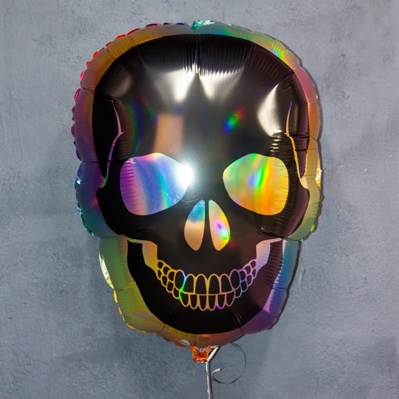 Шар (27''/69 см) Фигура, Череп Призрачный опал, Черный, Голография, 1 шт., 25015RH