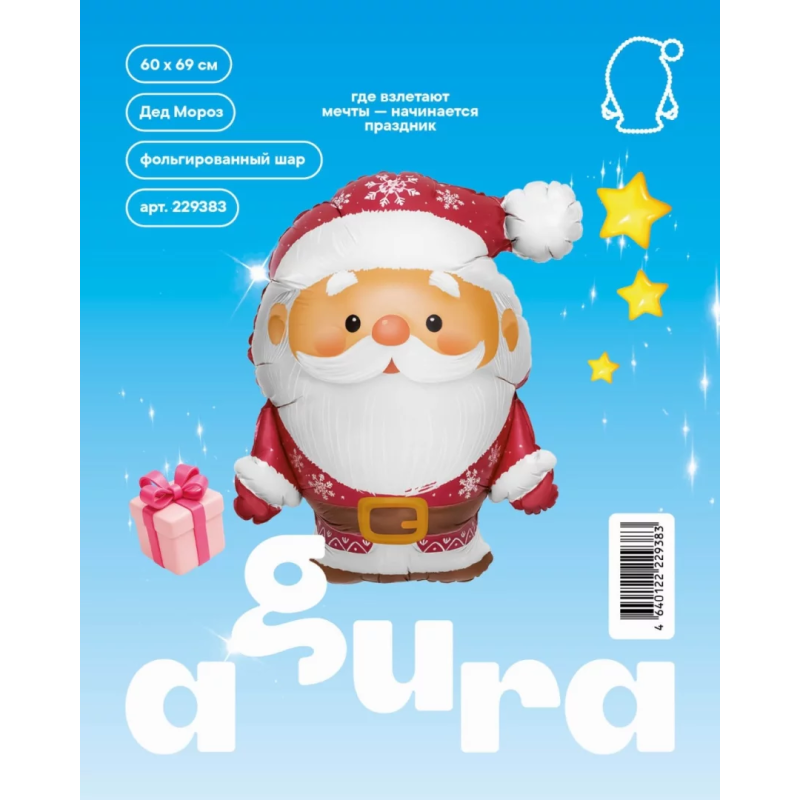 Шар (27''/69 см) Фигура, Дед Мороз, 1 шт. в уп., 229383