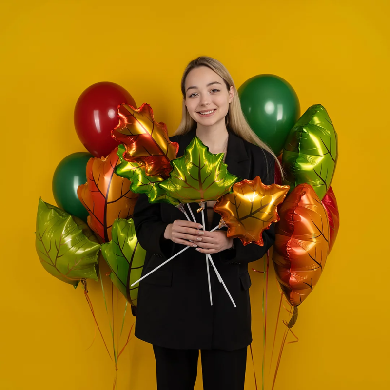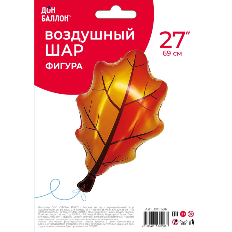 Шар (27''/69 см) Фигура, Дубовый лист, Оранжевый, 1 шт. в уп., 190169P