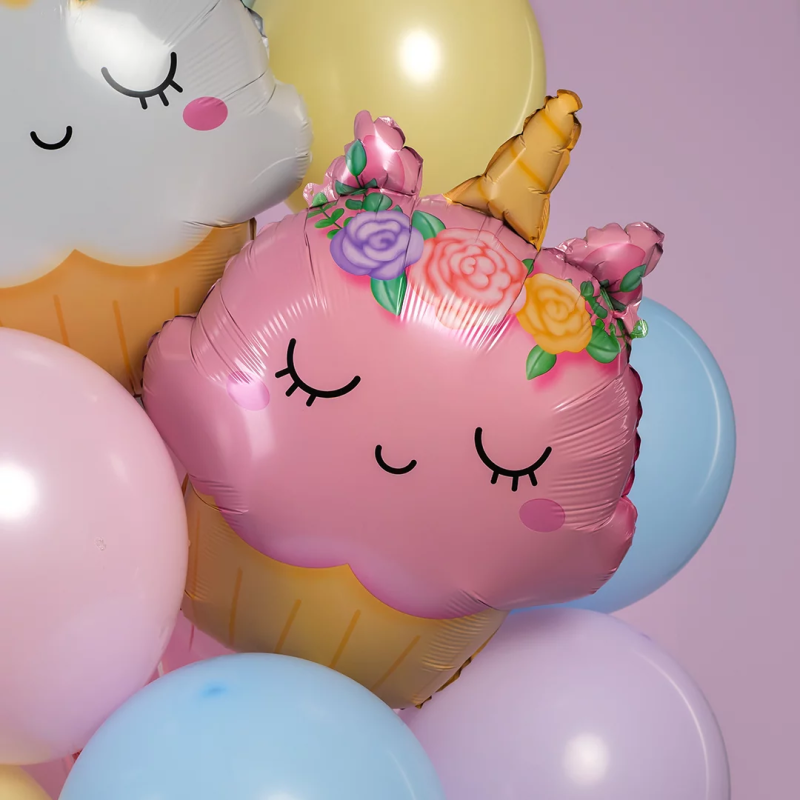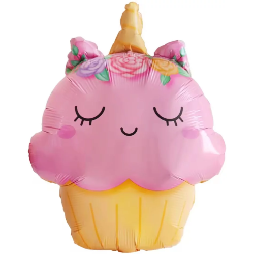 Шар (27''/69 см) Фигура, Кексик, Цветочный единорог, Розовый, 1 шт., 24770