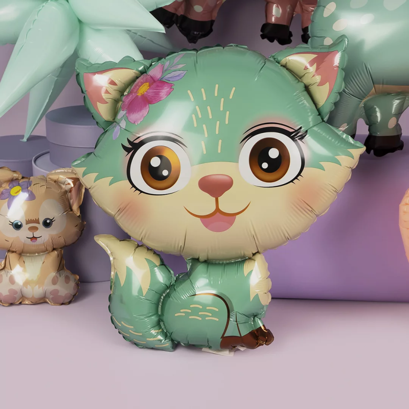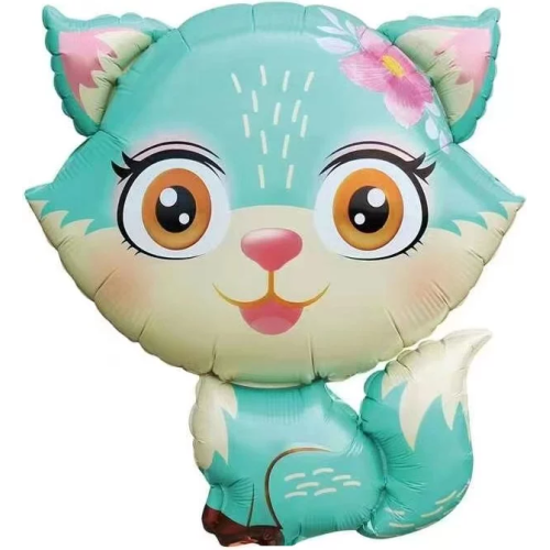 Шар (27''/69 см) Фигура, Лисенок с цветком, Бирюзовый, 1 шт., 23219