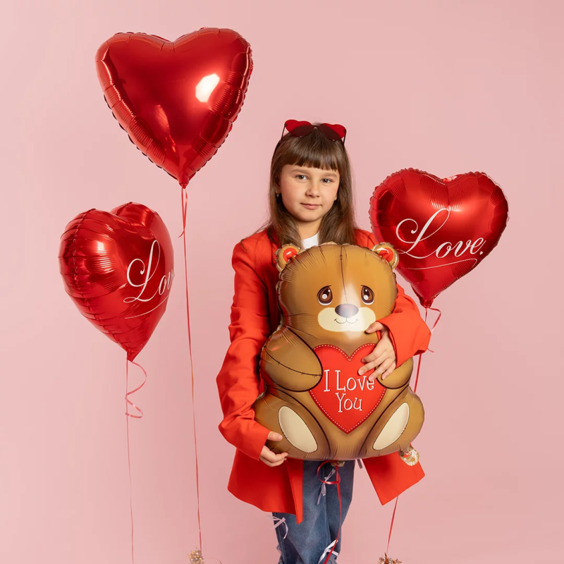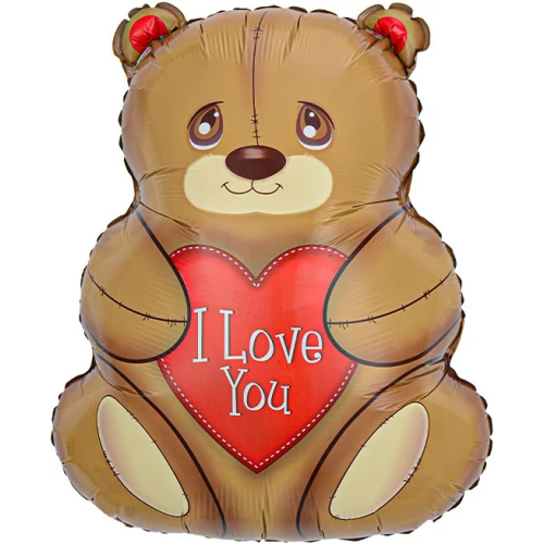 Шар (27''/69 см) Фигура, Мишка с сердцем, 1 шт., 25116