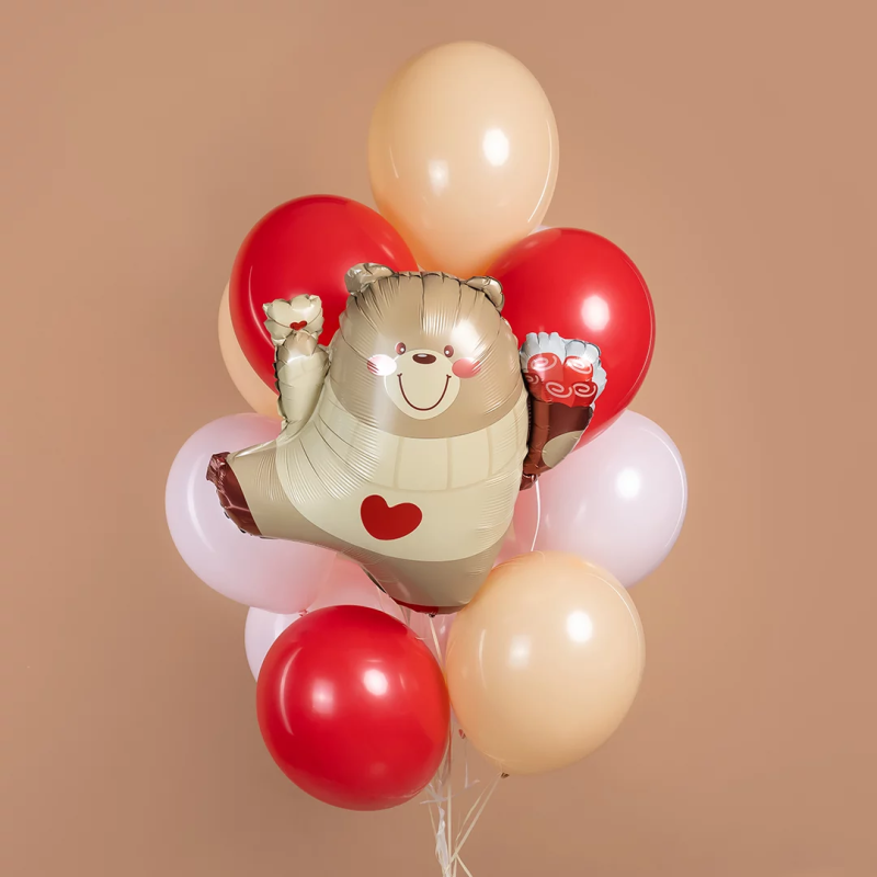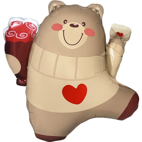 Шар (27''/69 см) Фигура, Мишка с валентинкой, 1 шт., 27531