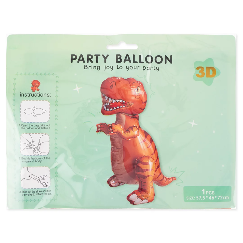 Шар (28''/71 см) Фигура 3D, Динозавр Тираннозавр, Оранжевый, 1 шт. в уп., 26072
