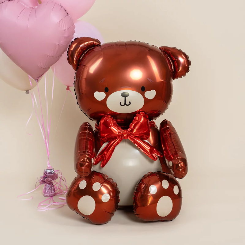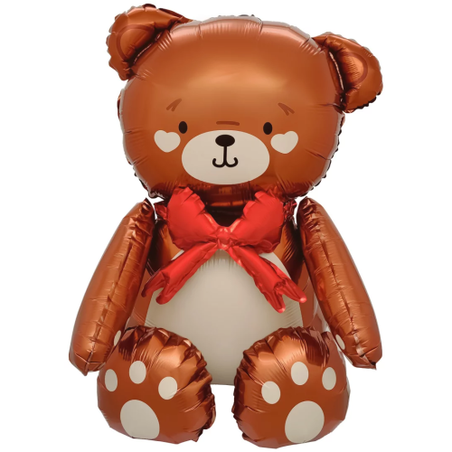 Шар (28''/71 см) Фигура 3D, Сидячий мишка с бантиком, Коричневый, Сатин, 1 шт. в уп., 26686