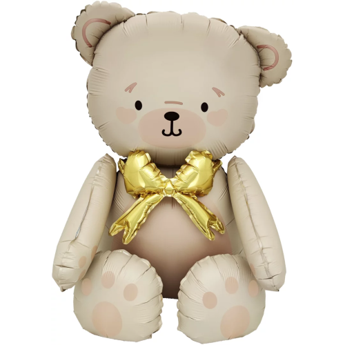 Шар (28''/71 см) Фигура 3D, Сидячий мишка с бантиком, Сатин, 1 шт. в уп., 26685
