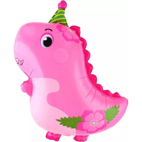 Шар (28''/71 см) Фигура, Динозаврик в колпачке, Розовый, 1 шт., 19953