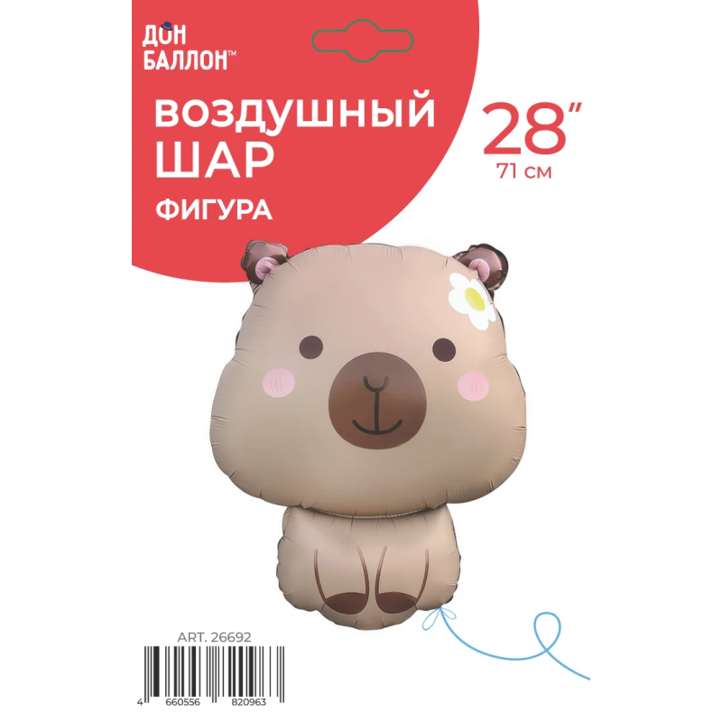 Шар (28''/71 см) Фигура, Капибара с ромашкой, Сатин, 1 шт. в уп., 26692