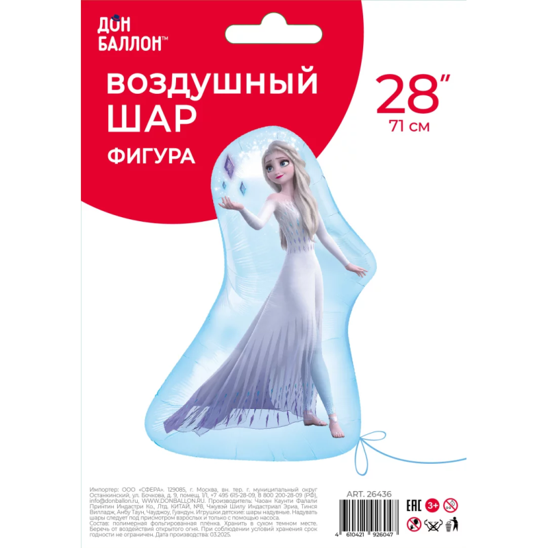Шар (28''/71 см) Фигура, Холодное сердце, Эльза, 1 шт. в уп., 26436
