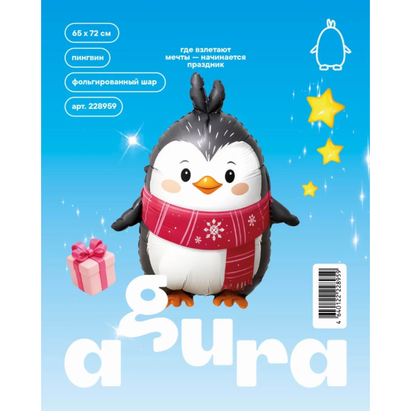 Шар (28''/71 см) Фигура, Новогодний пингвин, 1 шт. в уп., 228959