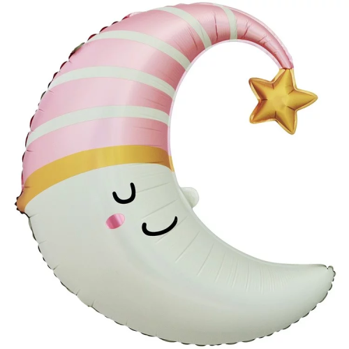 Шар (28''/71 см) Фигура, Спящий полумесяц для малышки, Розовый, 1 шт., 26252