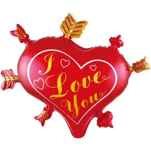 Шар (28''/71 см) Сердце, Стрелы Амура, Красный, 1 шт., 20213