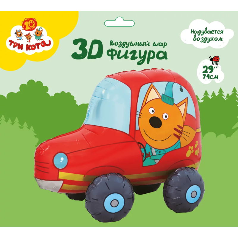 Шар (29''/74 см) Фигура 3D, Три Кота, Компот в машинке, 1 шт. в уп., 401137