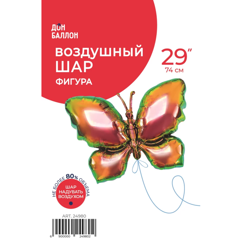 Шар (29''/74 см) Фигура, Бабочка (надув воздухом), Фантом, Градиент, 1 шт. в уп., 24980