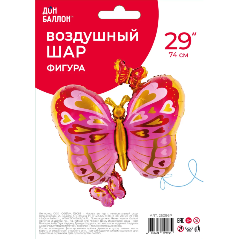 Шар (29''/74 см) Фигура, Бабочки, Розовый, 1 шт. в уп., 25096P
