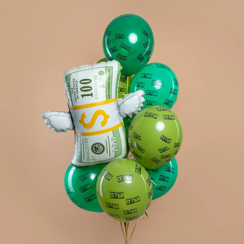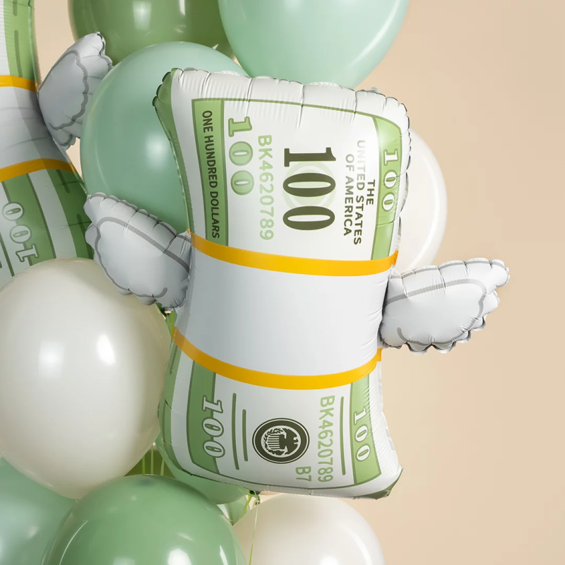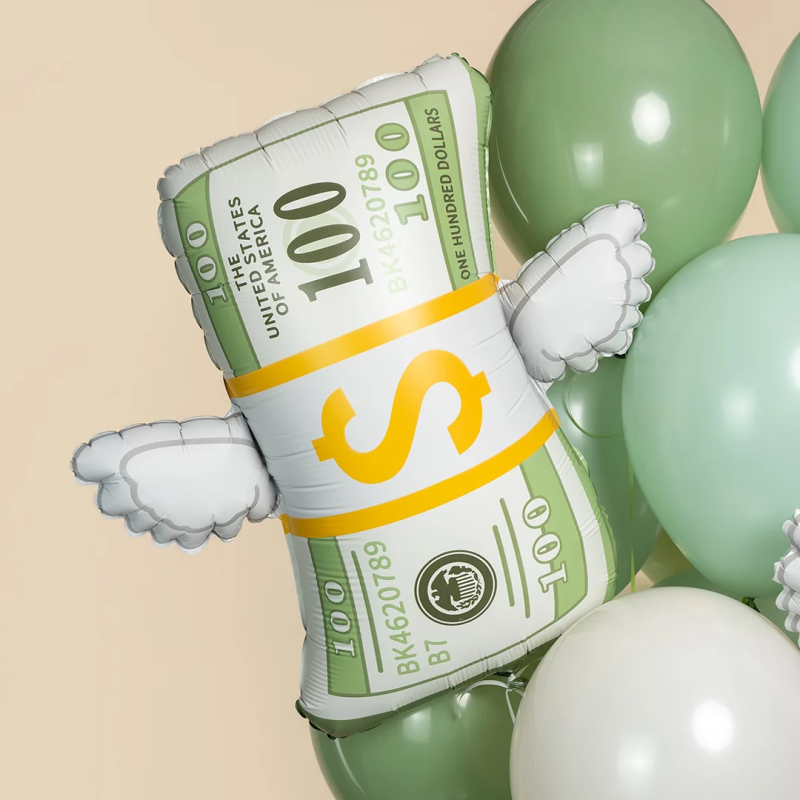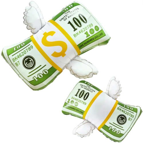 Шар (29''/74 см) Фигура, Доллары с крыльями, 1 шт. в уп., 26739