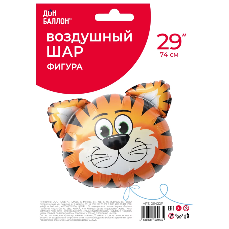 Шар (29''/74 см) Фигура, Голова, Тигр, 1 шт. в уп., 26422P