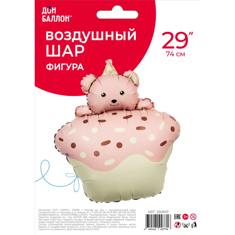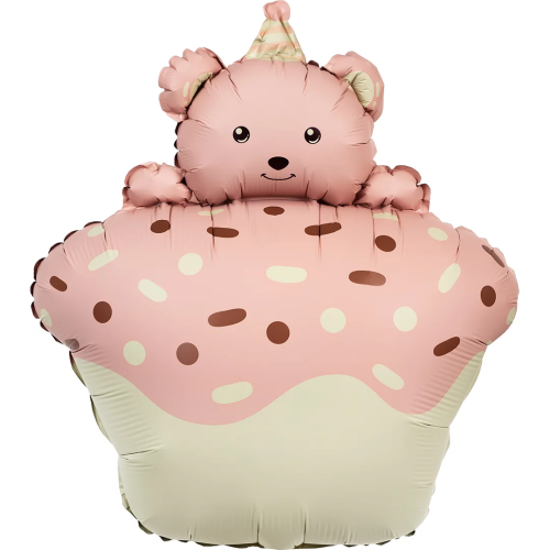 Шар (29''/74 см) Фигура, Кексик с медвежонком, Розовый, Сатин, 1 шт. в уп., 25061P