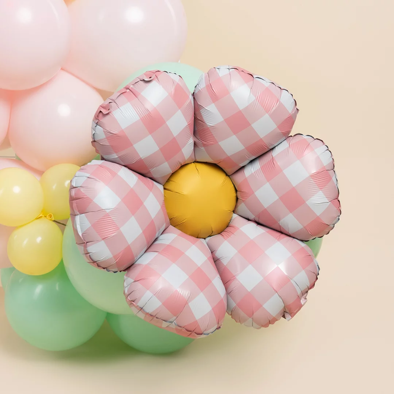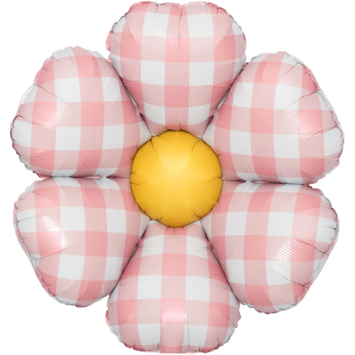 Шар (29''/74 см) Цветок, Ромашка, Клетка Виши (надув воздухом), Розовый, 1 шт., 27639