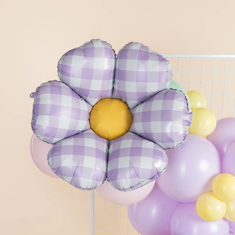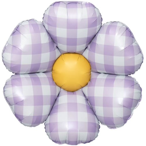 Шар (29''/74 см) Цветок, Ромашка, Клетка Виши (надув воздухом), Сиреневый, 1 шт., 27638