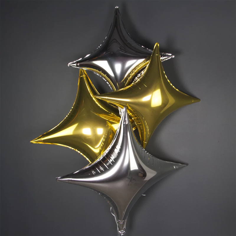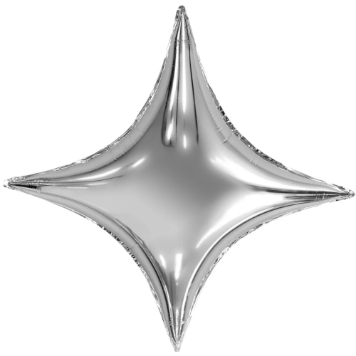 Шар (29''/74 см) Звезда, 4х-конечная, Сириус, Серебро, 1 шт. в уп., 758496
